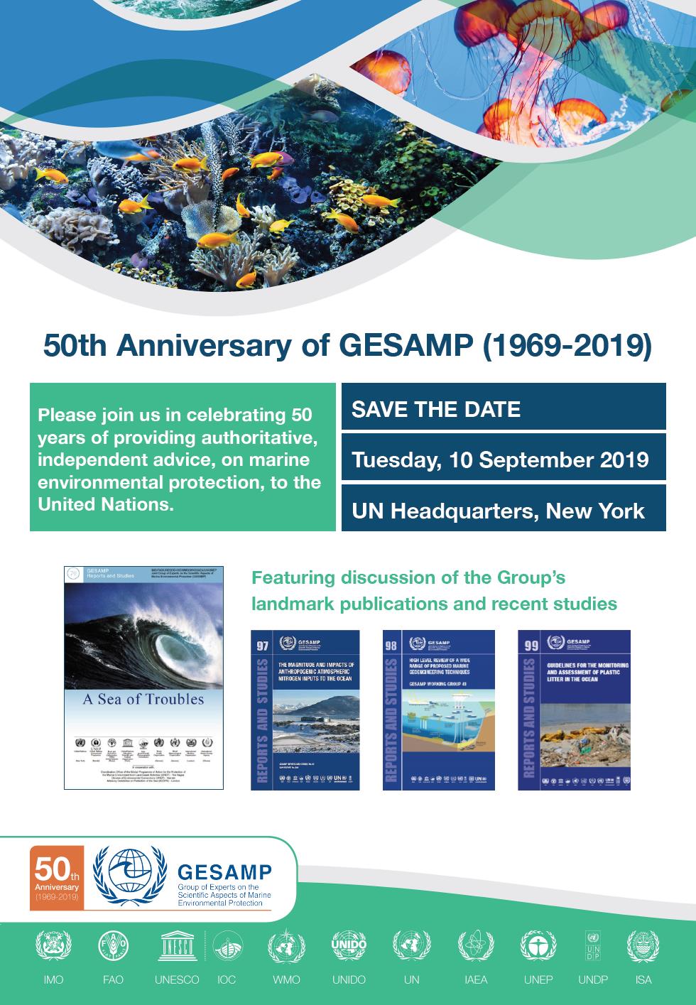This year, GESAMP will be celebrating 50 years since its establishment. The event will be co-hosted by UN-DOALOS and UNDP at the UN Headquarters in New York on the 10th of September 2019. The programme (which can be uploaded at the end of this page) will highlight GESAMP's past achievements, the Group's current work and articulate GESAMP's vision.
